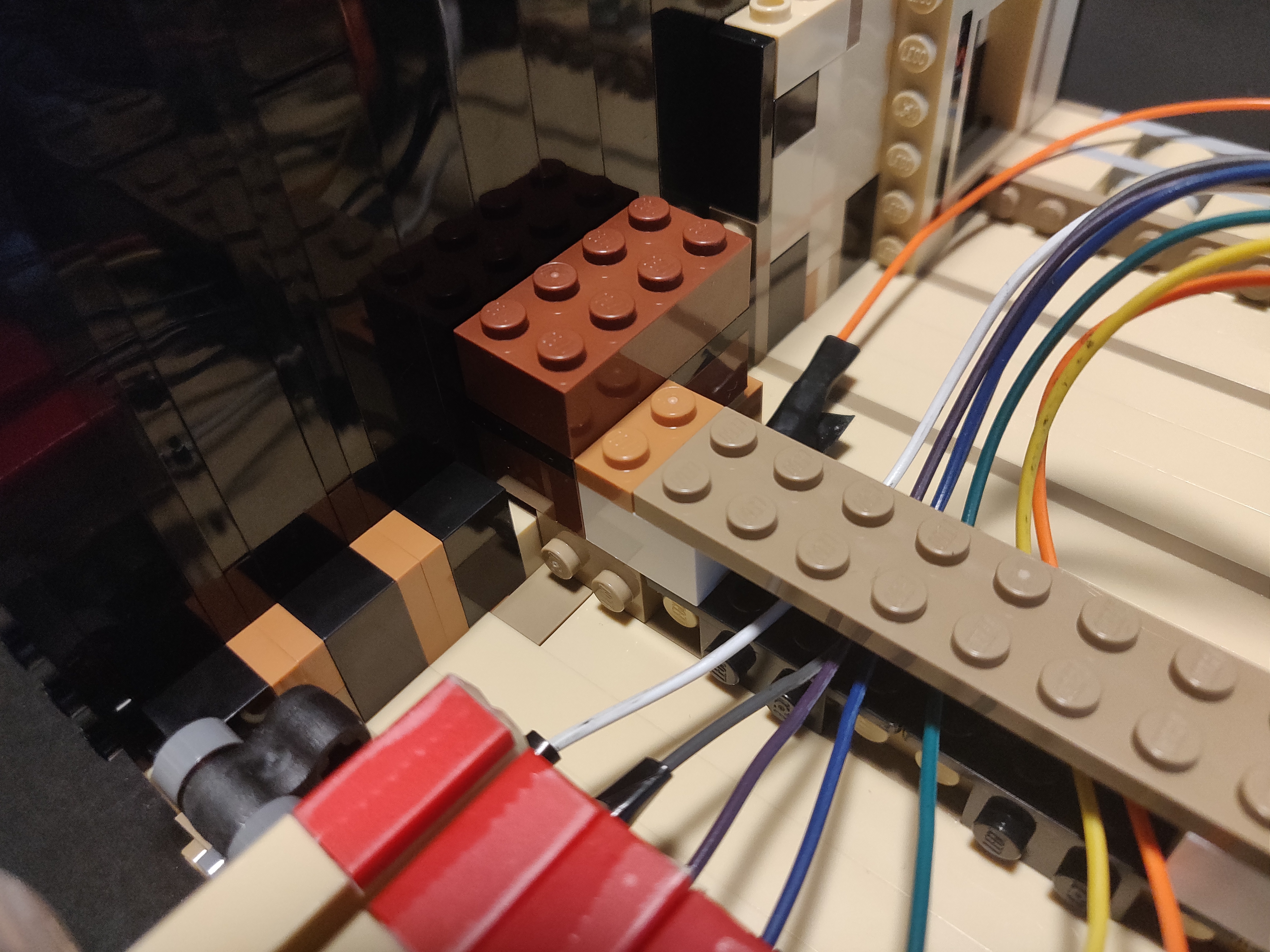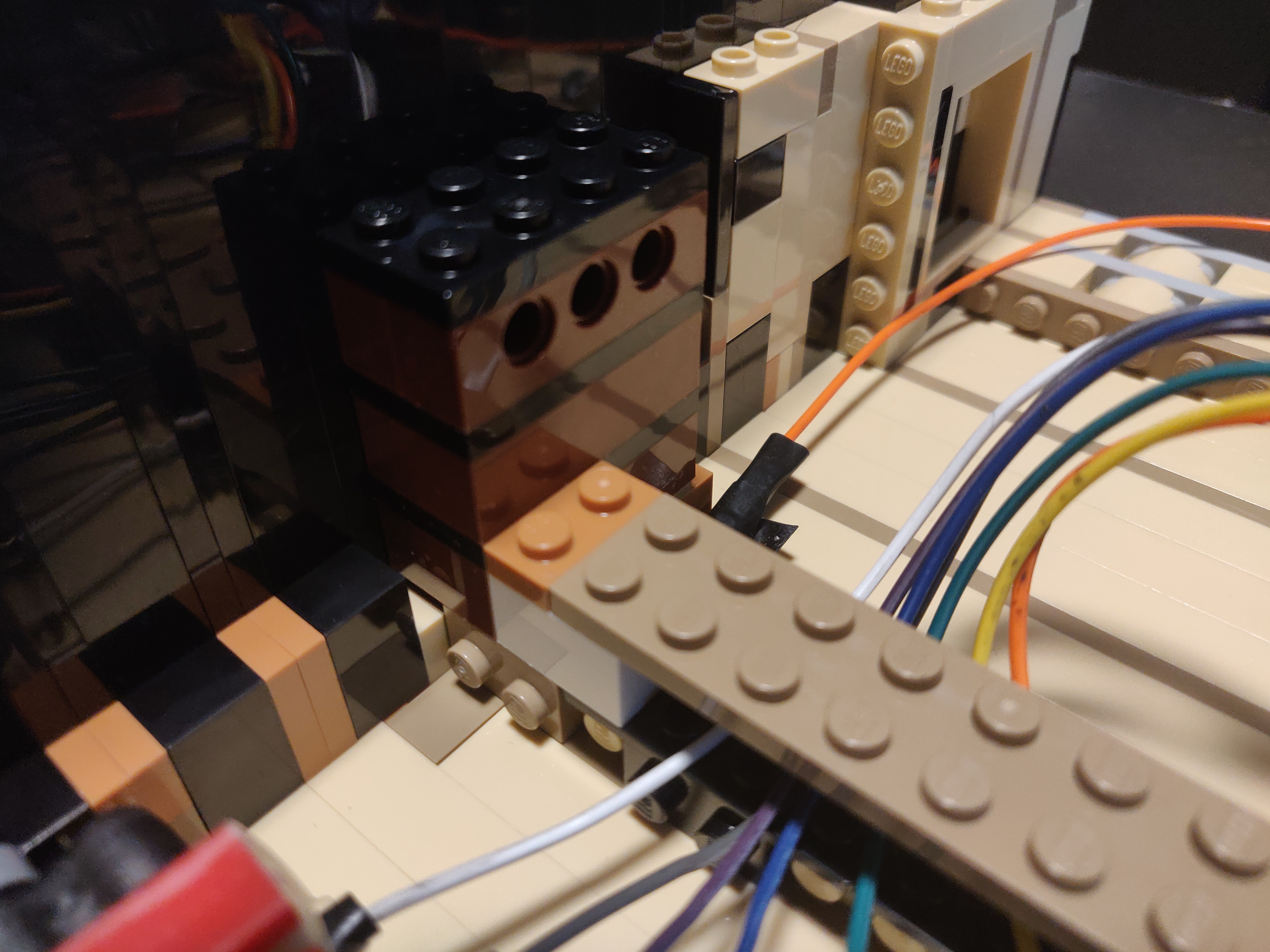 We start by building just the keyboard portion of the Lego set (this starts at bag 11 of the instructions) - we'll revisit the rest of the set once this is working reliably. If your piano is already built, take it apart and lift out the keyboard and power functions assemblies so that you can work on the areas in the following pictures - it's annoying, but not as tricky as it looks, based on my experience. Once that's done, we'll wrap the entire base underneath the keys in tape (or the individual plates which are then linked) - this will be our ground once we connect it to the Raspberry Pi's ground. To do this, connect it using the tape across the bottom of the base so you can connect to the Raspberry Pi ground wire on the other side (remove the Dupont connector using the tweezers, and wrap the tape around the end of the wire). We also add a wire on 25 separate GPIO pins starting from 2, and an additional wire for ground (consult a pin map of your model for this step). We haven't yet built the switches, but this is a good time to test out the software by manually closing the circuits and making sure the keys on the UI light up/produce sound.