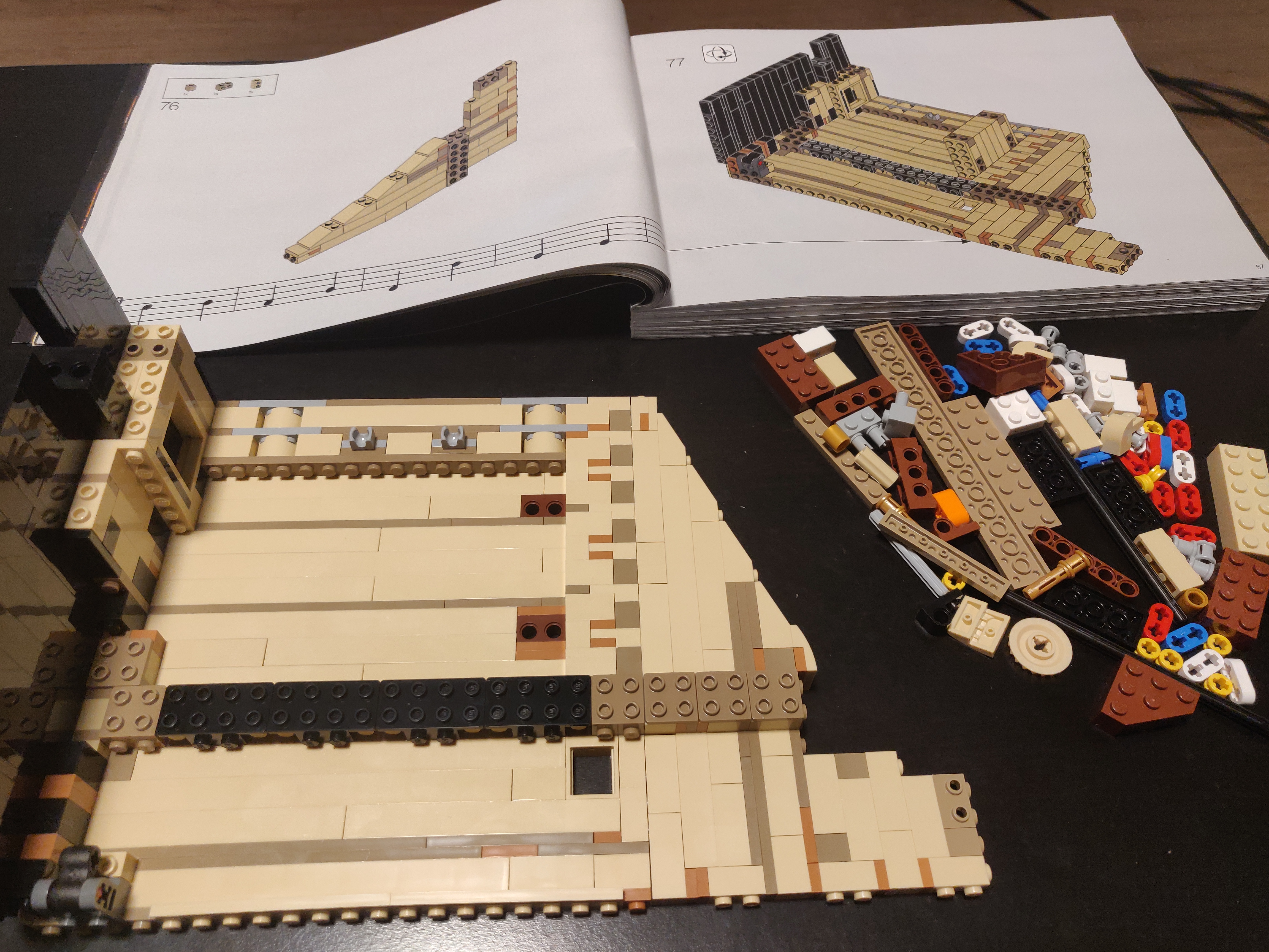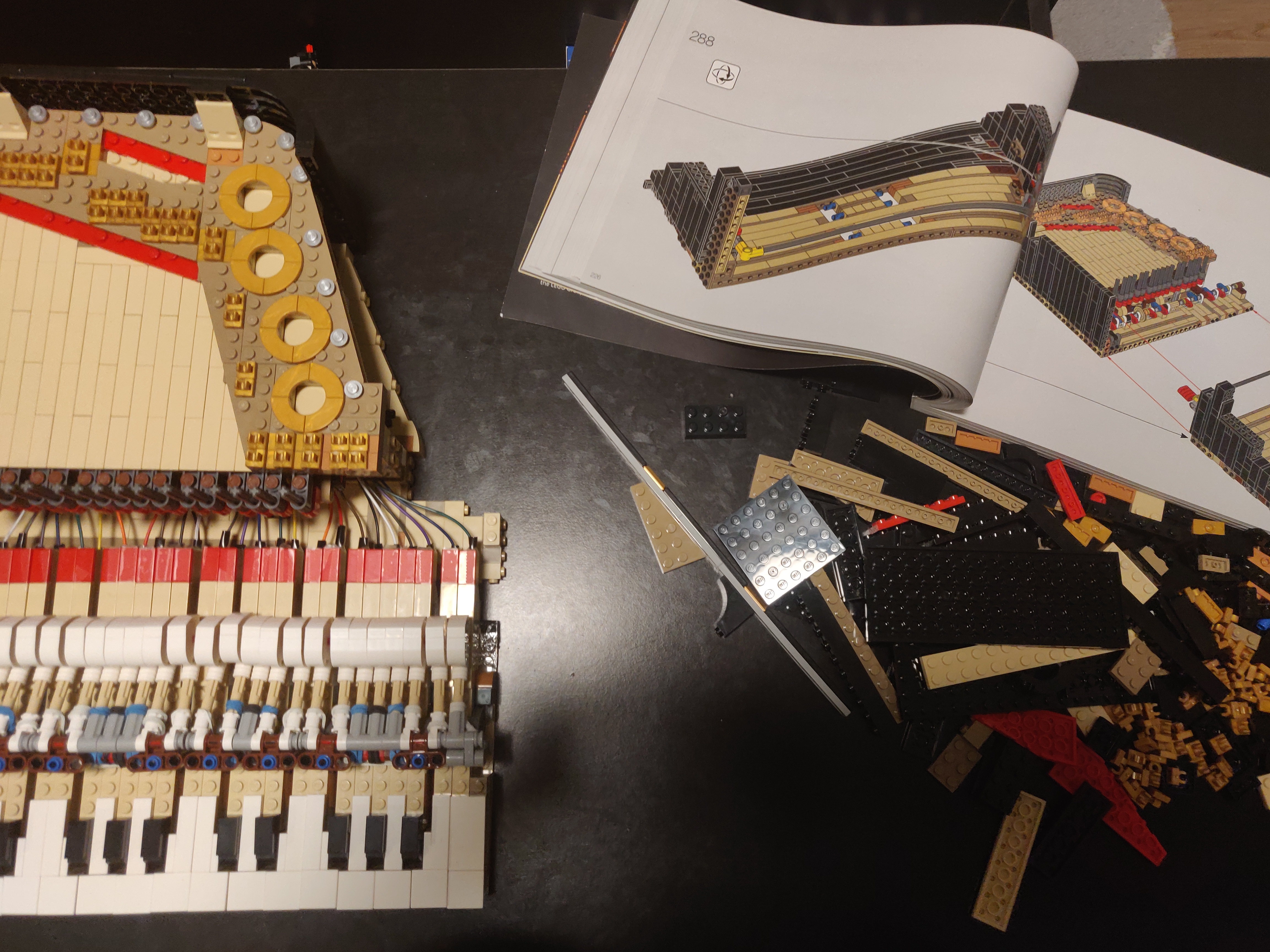 Make sure everything works before you seal it in. We then build the rest of the piano as usual. The only other tricky part is step 288, but isn't too bad if the keys are handled a little carefully.