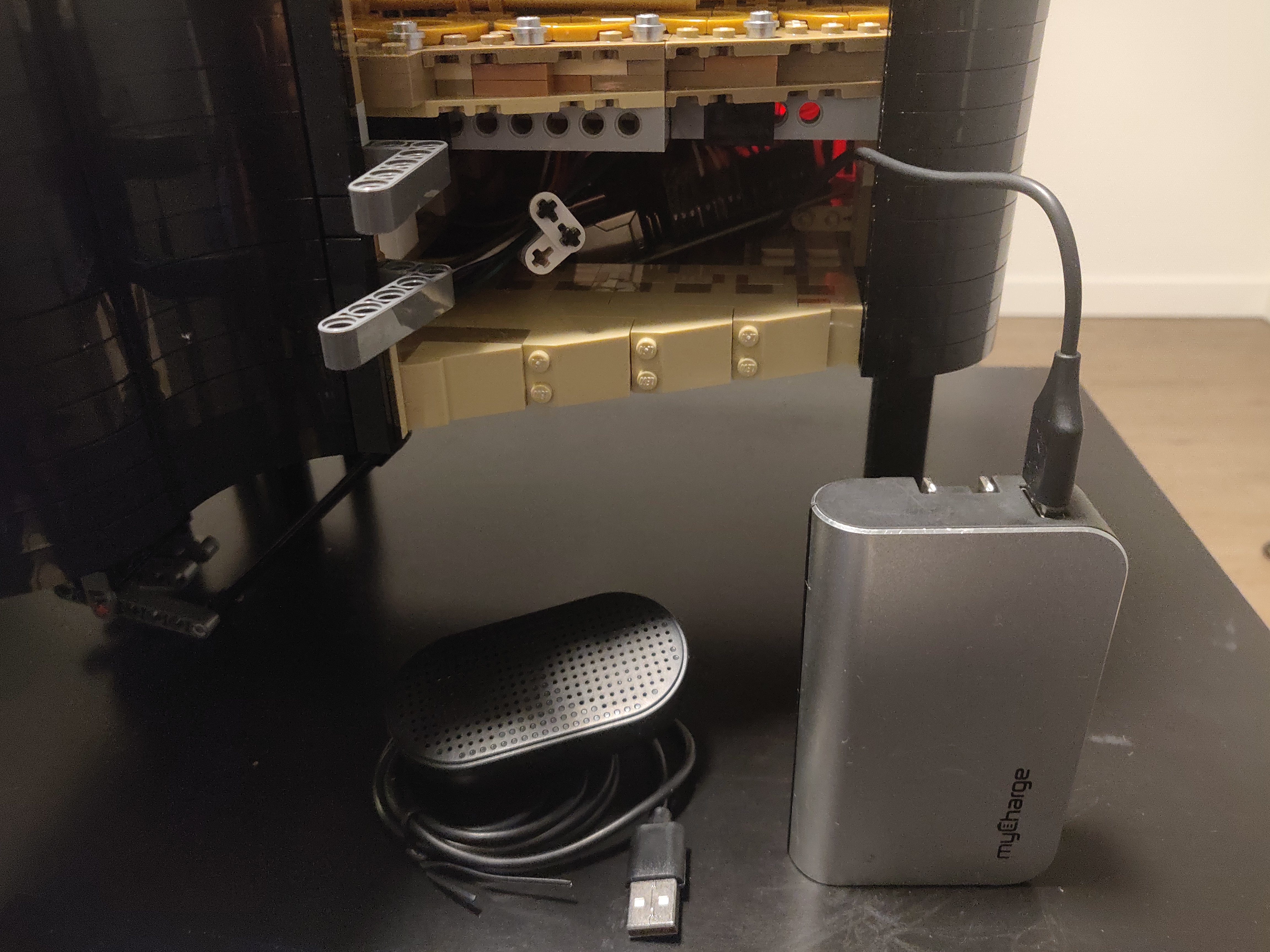 Once we're done, the Raspberry Pi should be accessible from the side panel, so we can plug it in, add a power bank, etc.